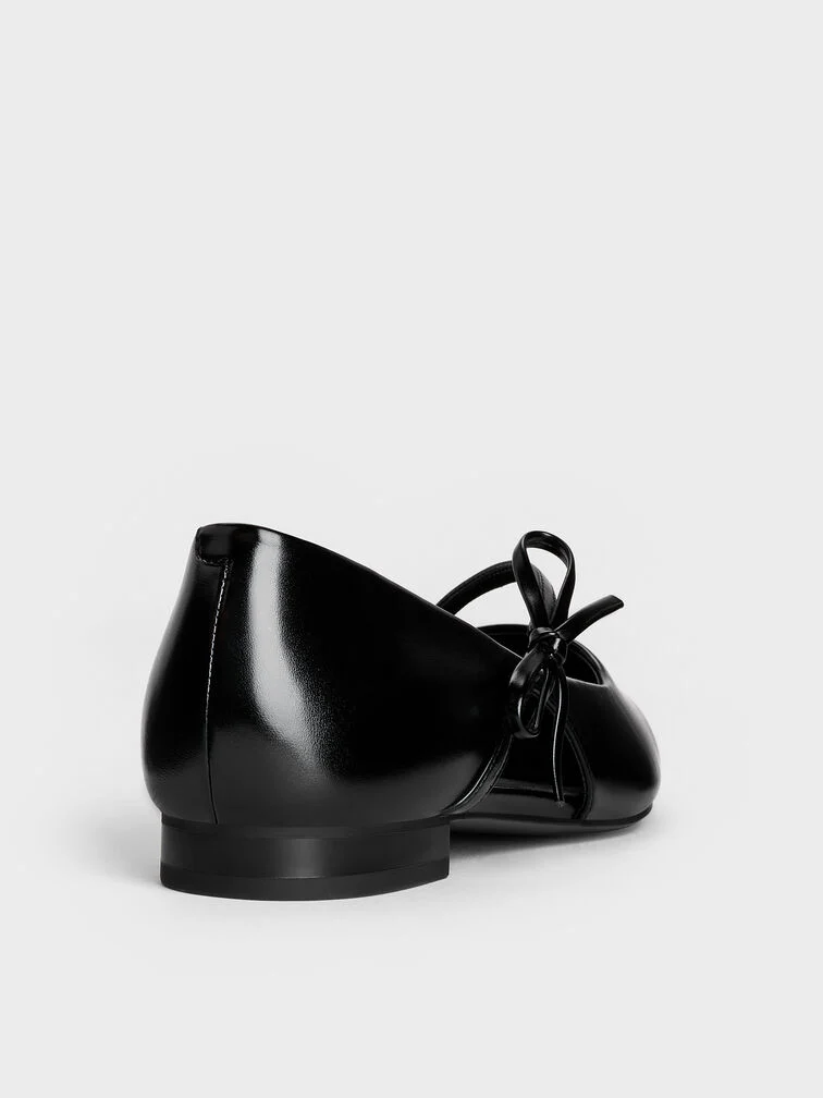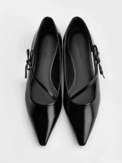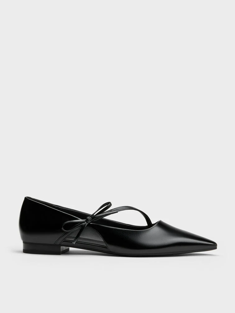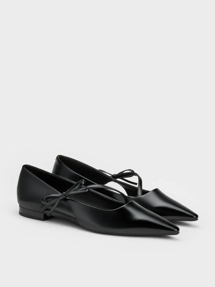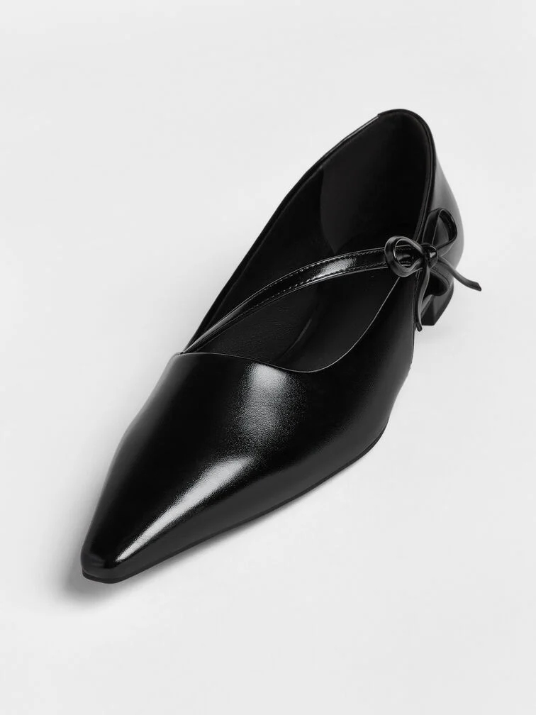 Giày búp bê mũi nhọn Bow-Strap – Đen