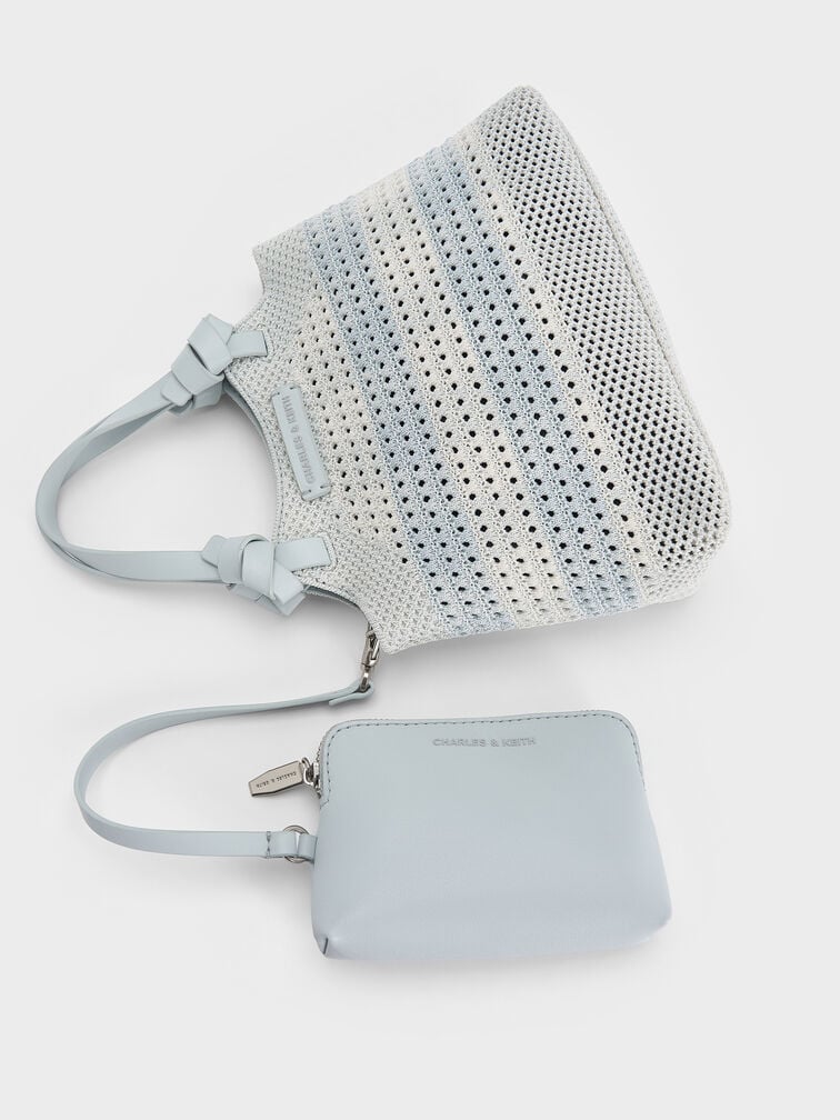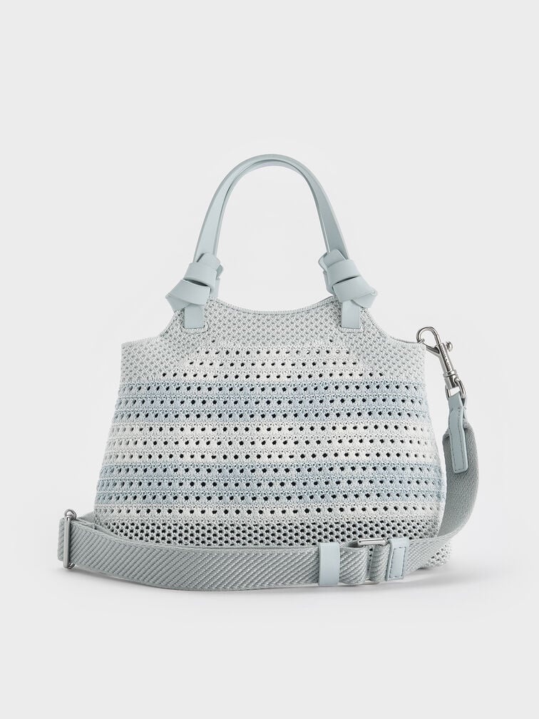 Túi tote phom hình thang Ida Checkered Knotted – Sea Salt Blue