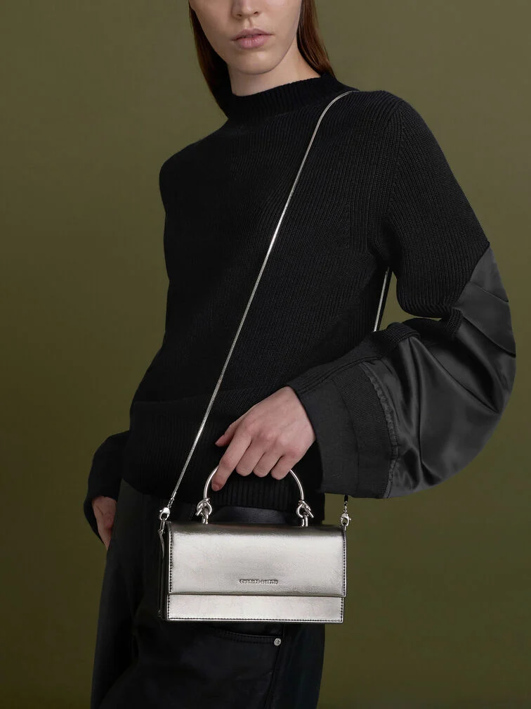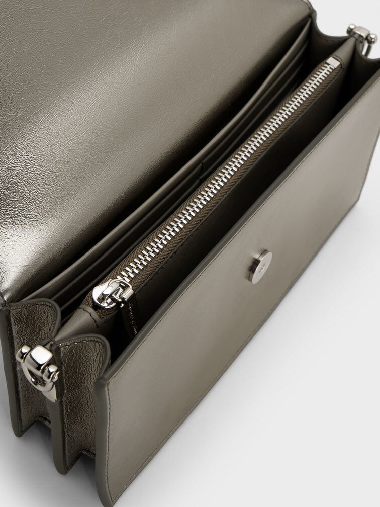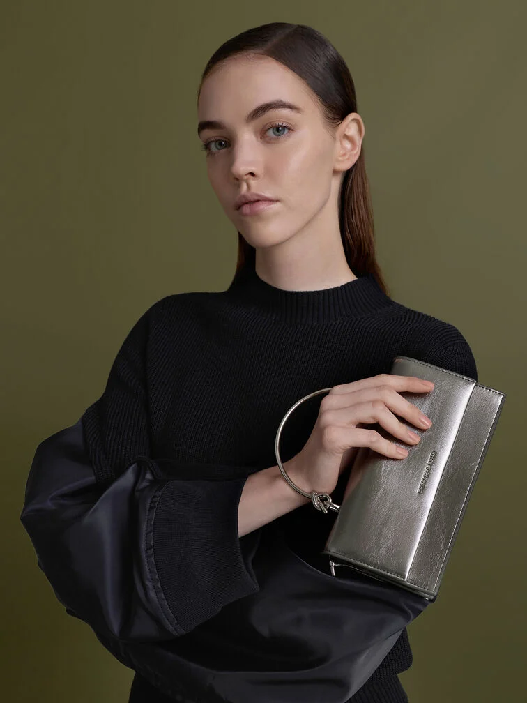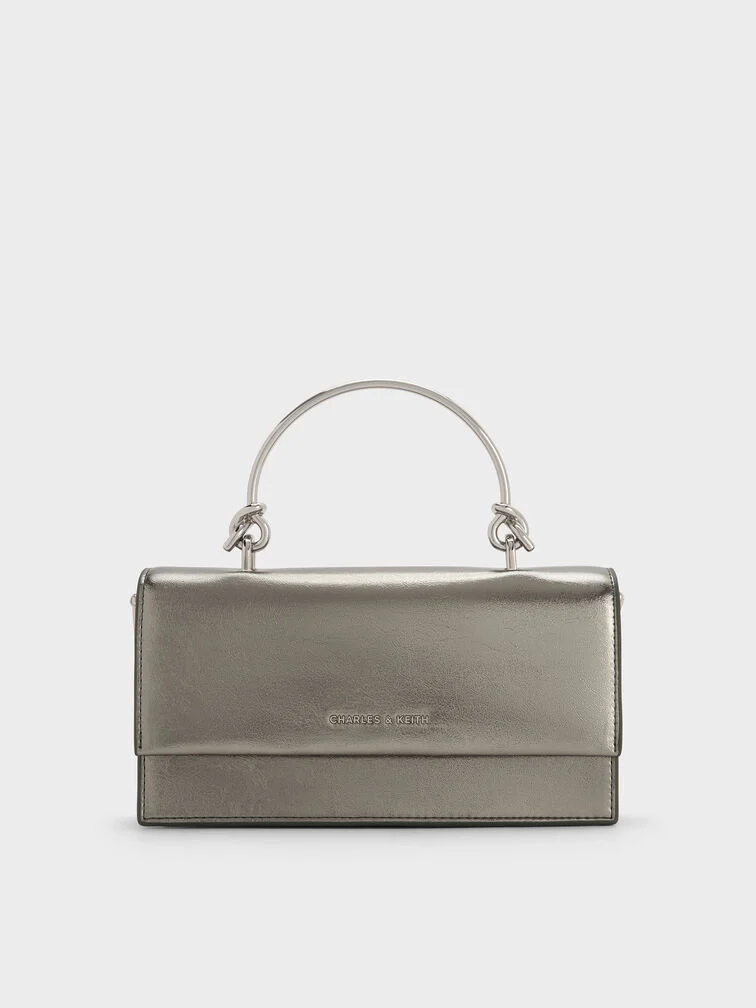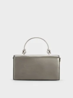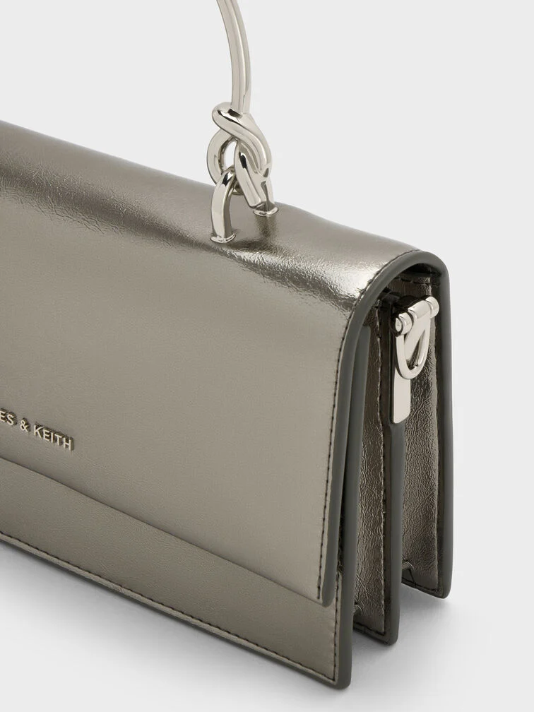 Ví dáng dài chữ nhật Kristine Metallic Sculptural-Handle – Xám be